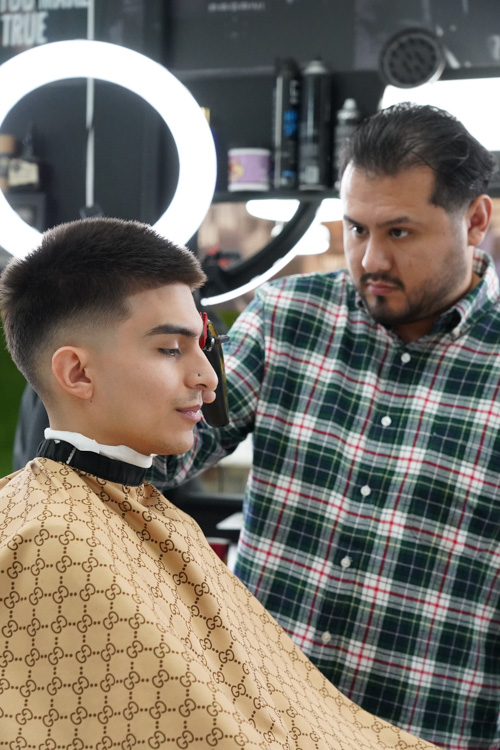 In our Houston hair salon’s gallery, you'll find a visual narrative of our passion for excellence and dedication to craftsmanship. Each image captures the artistry and precision that goes into every cut, showcasing the skill and expertise of our barbers and estheticians. From the clean lines of a fade haircut to out precisely curated top-quality grooming products, every picture tells a story of meticulous care and attention.